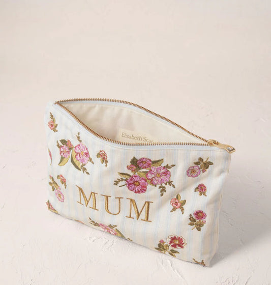 Elizabeth Scarlett Floral Bouquet Stripe/Blue Canvas Everyday Pouch - Mum
