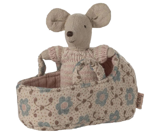 Maileg Baby Mouse in Carry Cot - Rose