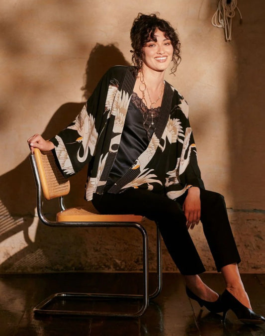 One Hundred Stars Stork Black Crepe Kimono